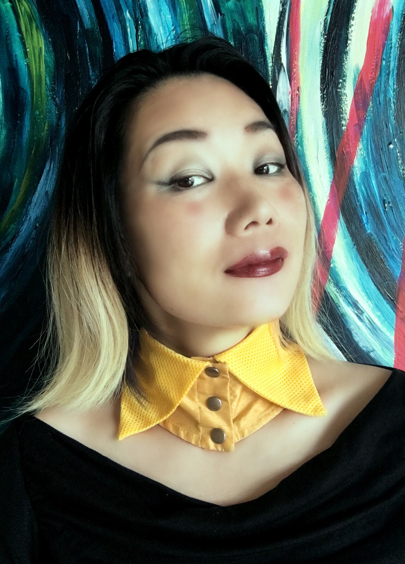 首の形に沿ってネックコルセットのような形に作ってあるハイカラーのつけ襟です。襟の部分はカジュアルなメッシュ、首の部分は高級感あるバックサテンシャンタンマットで作ってあります。襟ぐりの開いた服に合わせてこのハイカラーイエローつけ襟をつけると背筋がスッと伸びて、なんだか自分が楽しいキャラクターになったような特別の気分が味わえます。イエローは今まであまり使ったことがないのですが、生地見本を見ていると、このイエローが目の奥にグッときたので使ってみました。他の色・生地でもお仕立て可能です。お気軽にご相談ください☆